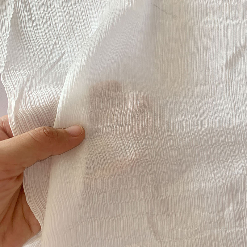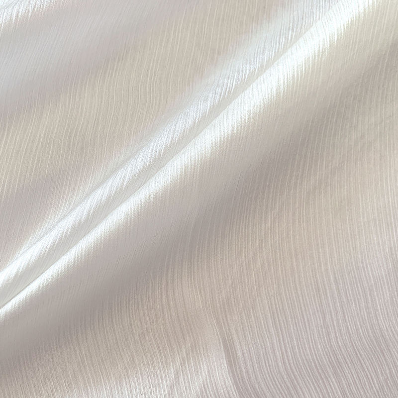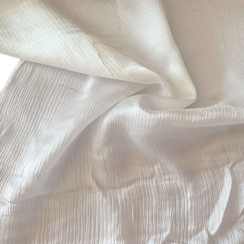 This high-quality white crinkle satin fabric is made of 100% natural silk, featuring a unique wrinkled texture and soft satin luster. It is lightweight, breathable, skin-friendly and comfortable to wear, with good drape and durability. The elegant texture and smooth handfeel make it perfect for women’s dresses, blouses, skirts and fashion garments. Custom colors and specifications are supported to meet different design and production needs.