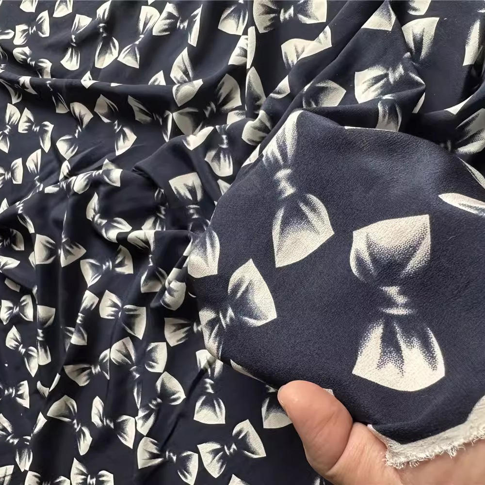 16 Momme 135cm Width Silk Crepe De Chine Custom Silk Printing Bow Print Fabric