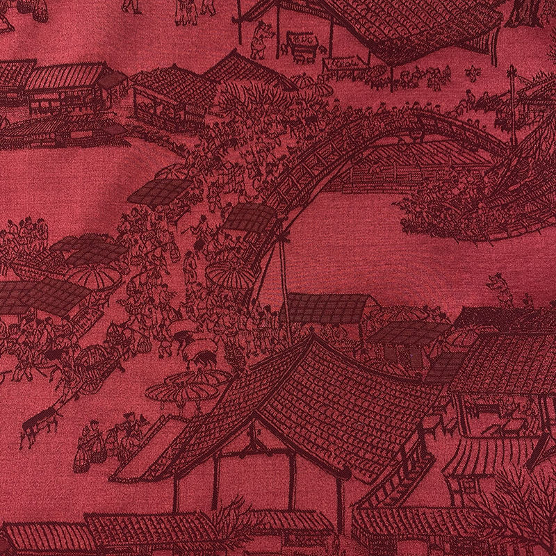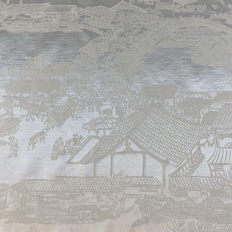 Premium custom brocade jacquard satin weave wool fabric blended with 30% silk. Smooth surface, soft hand feel, elegant luster and great drape. Perfect for high-end dresses, evening gowns and formal wear. Colors and patterns can be customized.