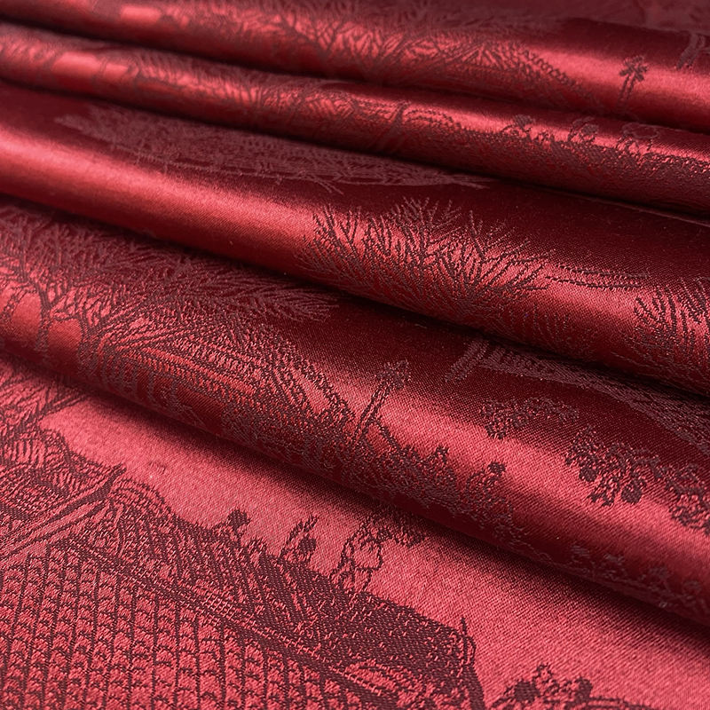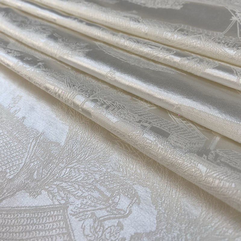 Brocade Jacquard Satin Weave Wool Fabric 30mm Silk Wool Satin Fabric for Dress