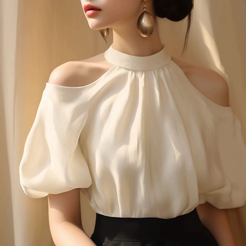 French shirt design with a one-word collar top, it is really a summer treasure shirt! At first sight, I was attracted by the elegant design. The one-word collar design just shows the charming collarbone and shoulder line, showing the femininity and sexiness. The material of this top is also very comfortable, breathable and light, and it will not feel stuffy to wear in the hot summer.