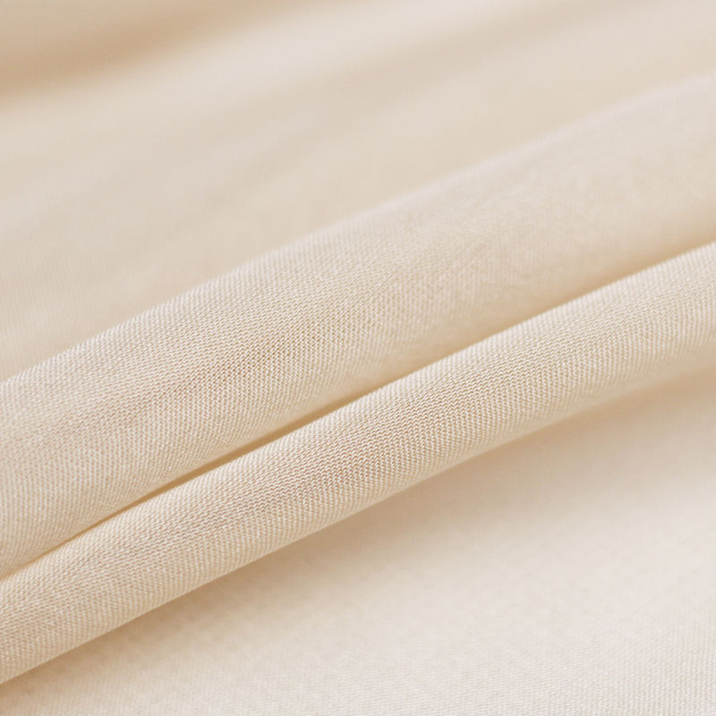 Lightweight, sheer, breathable and flowy with elegant drape.